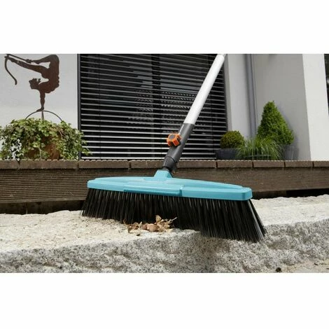 Le balai de cantonnier Combisystem GARDENA est idéal pour une utilisation dans le jardin et sur les allées bordant la maison. Avec une largeur de travail de 45 cm et sa tête résistante aux chocs en plastique de haute qualité, ce balai robuste peut être utilisé pour un grand nombre d’applications. Les poils durs et souples en polypropylène permettent d’obtenir un nettoyage optimal et un travail efficace. Un grattoir intégré au-dessus du balai permet de s’attaquer sans effort à la poussière incrustée et aux feuilles humides. La longueur du manche Combisystem recommandée est de 130 ou 150 cm.