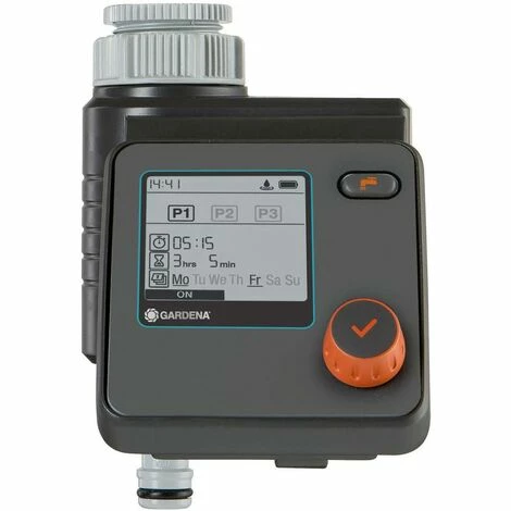 La commande d’arrosage Gardena Select permet de planifier l’arrosage de façon flexible et personnalisĂ©e. Trois programmes indĂ©pendants peuvent ĂŞtre configurĂ©s pour l’arrosage de votre jardin. La commande fonctionne sur piles, s’installe directement sur le robinet et s’utilise facilement via un bouton-poussoir rotatif pour la sĂ©lection des donnĂ©es et via une touche de validation. Un Ă©cran LCD facilement lisible affiche tous les paramètres d’un seul coup d’Ĺ“il. L’unitĂ© de commande rĂ©sistante aux intempĂ©ries est amovible. La commande d’arrosage Select peut ĂŞtre utilisĂ©e en combinaison avec un capteur d’humiditĂ© du sol Gardena.