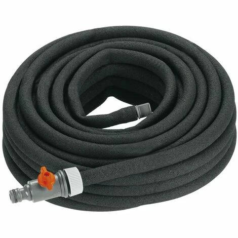 Le tuyau microporeux GARDENA convient particulièrement pour l’arrosage ciblé à économie d’eau pour les rangées de plantations, parce qu’il fonctionne même à basse pression. Il est prêt à être connecté à tous les raccords Original GARDENA System et est fourni avec une vanne régulatrice de débit et de pression. Le tuyau microporeux présente une longueur de 7,5 m. Il peut être raccourci ou rallongé par simple raccordement jusqu’à 30 m au maximum.