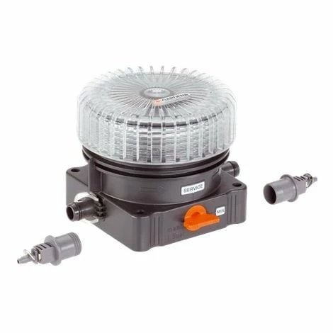 Unité de dosage d’engrais GARDENA modèle 8313-29 pour mélanger l’engrais liquide universel et fertiliser pendant l’irrigation Le distributeur est particulièrement adapté pour verser l’engrais liquide universel GARDENA art.8303 dans le Micro-Drip-System La grande ouverture et la valve pour vider l’engrais rendent l’utilisation du distributeur pratique et facile La quantité d’engrais peut être contrôlée via l’indicateur de niveau Il est fourni avec des connexions pour les tuyaux de ligne et de dérivation Modèle: 8313-29 Fertiliser pendant l’irrigation Avec indicateur de niveau Avec la technologie de connexion « Quick & Easy »