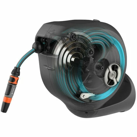 La technologie RollControl fonctionne grâce Ă un frein centrifuge et un ressort de haute qualitĂ© afin de garantir un enroulement toujours fiable et homogène du tuyau d’arrosage. De plus, le guide-tuyau intĂ©grĂ© Ă©vite les torsions lors de l’enroulement du tuyau d’arrosage.