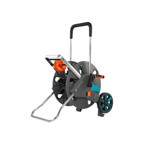 Le dévidoir GARDENA est équipé d’un raccord de tuyau coudé afin de permettre d’enrouler et dérouler le tuyau d’arrosage sans coude ni torsion et ainsi toujours garantir un débit d’eau maximal.