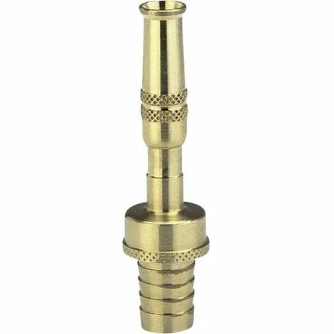 La pointe en laiton permet de régler le jet d’eau en continu, du jet concentré au jet brumisateur fin, ou de l’arrêter. Une gaine est fournie. Pour tuyaux de 19 mm (3/4).