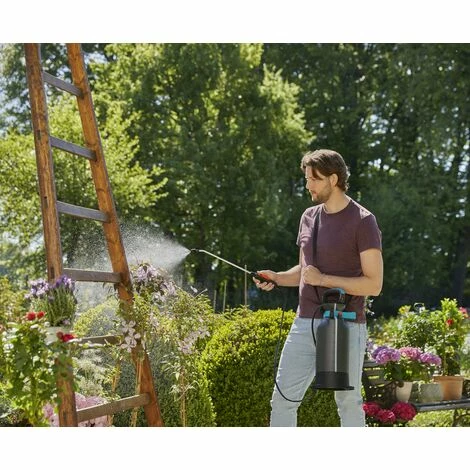 Le pulvérisateur à pression préalable 5 L GARDENA est idéal pour arroser, vaporiser et fertiliser les plantes au jardin ou le potager.