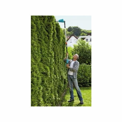Taille-haies sur perche THS42/18V P4A GARDENA est idéal pour élaguer les haies de grande taille, sans échelle et en toute sécurité depuis le sol.