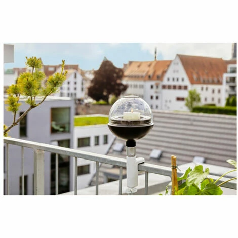 Équipez vos extérieurs de cettelanterne en toute facilité grâce au support pour balcon ClickUppour une ambiance particulièrement cosy ! Ce produit convient aux bougies de différentes tailles et apportera chaleur et lumière à vos terrasses, balcons et jardins. La hauteur de la plaque de bougie à l’intérieur peut être ajustée de manière à ce que la flamme soit toujours visible. Vous pourrez également agir sur le comportement de combustion de la bougie afin que la lumière atteigne l’effet souhaité. La flamme sera entourée d’une boule de verre et ainsi protégée du vent et de la pluie, laissant la lumière briller intensément. Utilisez des bougies de différentes tailles jusqu’à une hauteur de 8 cm et un diamètre de 6 cm ou des bougies chauffe-plat disponibles dans le commerce. Design moderne et élégant, ce produit est de qualité supérieure, avec son dôme et dessus en verre ainsi que son fond en métal.
