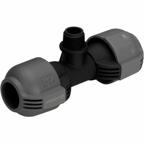 Le GARDENA T 25 mm x filetage extérieur 1/2 sert du système sprinkler GARDENA – pour le branchement de la Versenkregners S 80 (réf. 1569-26) ainsi que la turbine d’arrosage escamotable T 100 et T 200 (réf. Art. 8203-29 et 8201-29) dans la conduite. La technologie de raccordement rapide brevetée Quick & Easy permet de monter et de démonter rapidement et sans outil les tubes, en tournant simplement les raccords vissés sur 140°. Pour un fonctionnement étanche et sûr, le raccord fileté du T se referme automatiquement. Ce texte a été traduit par une machine.