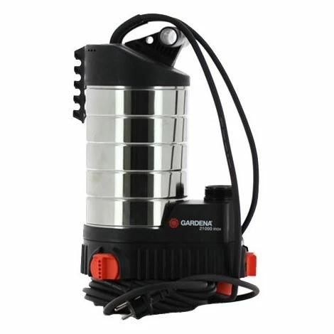 Pompe d’évacuation 21000 inox Premium de Gardena : une aspiration à toute épreuve !Puissance nominale : 1000 W – Débit max 21000 l/h—–Caractéristiques : Pression max : 1.1 barProfondeur d’immersion : 7 mHauteur manométrique : 11 mTempérature max. du liquide : 35 °CPoids : 8.3 kgLongueur de câble : 10 mType de câble d’alimentation : H07 RNFIndice de protection électrique : IPX8 Pourquoi choisir une pompe immergée Gardena ? : Lorsqu’un dégât des eaux se produit et que l’eau s’engouffre là où elle ne doit pas, il est primordial d’agir dans les plus brefs délais afin d’éviter des dommages trop importants. Pour prévenir ce type de dégâts il est nécessaire d’utiliser un matériel de pompage adapté. C’est dans ces conditions que la pompe d’évacuation 21000 inox Premium entre en jeu puisqu’elle est capable de vidanger 21000 litres d’eau par heure ! La pompe supporte l’aspiration de grandes quantités d’eau claire ou faiblement chargée en particules de 5mm de diamètre maximum. La hauteur d’aspiration de l’appareil est réglable à 1 mm afin d’aspirer au ras du sol pour une efficacité optimale. Cette puissante pompe vide-cave se chargera de pomper toute l’eau posant problème en un rien de temps. Les éléments de la pompe d’évacuation 21000 inox Prenium : – La robustesse de la pompe est due à son corps en plastique renforcé de fibre de verre ainsi qu’à son moteur à condensateur muni d’une protection contre les surcharges thermiques.- Le mode manuel peut être enclenché grâce à un dispositif encliquetable.- La pompe possède un corps en inox et une turbine résistante à l’usure. Bon à savoir : – Les capteurs de marche/arrêt sont réglables indépendamment. – Aspiration au ras du sol pour une efficacité maximale.- Le raccordement universel permet d’utiliser des tuyaux allant de 13 mm à 50 mm. Les plus de la pompe-vide cave Gardena : – Fabrication en acier inoxydable- Évacuation de l’eau performante- Pompe dotée d’un flotteur pour une mise en marche/arrêt automatique.- Niveaux d’eau de démarrage et d’arrêt réglables- Poignée de transport