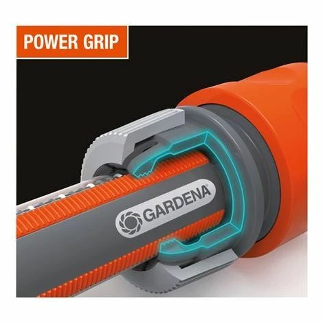 - Le tuyau est équipé de la bande PowerGrip pour une connexion parfaite entre le tuyau et le raccord d’arrosage.